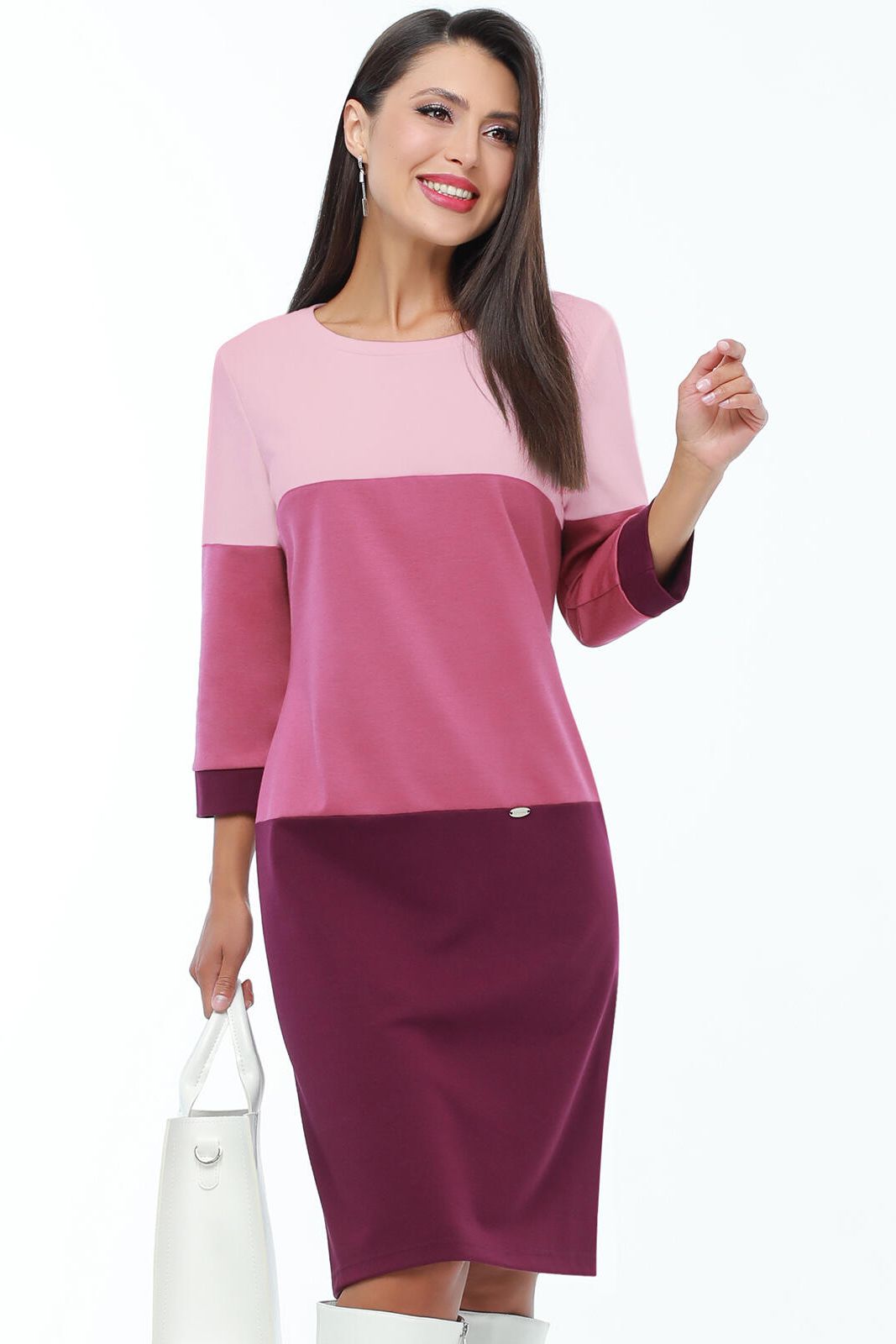 Трикотажное платье с рукавом три четверти цвета сливы от бренда DStrend. Модель полуприлегающего силуэта, округлый вырез горловины. Втачные рукава с манжетами. Без застёжки. Низ ровный. Идеальный выбор для повседневной носки. Рекомендована бережная стирка при 30 градусах.