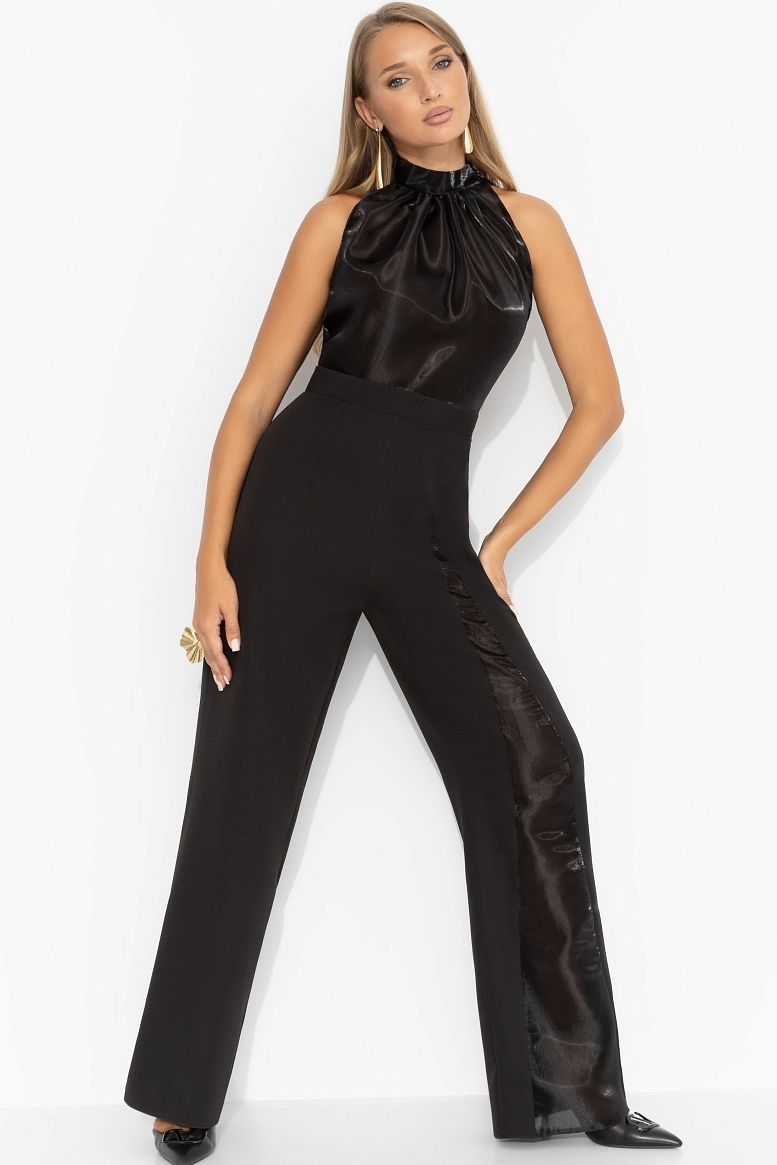 Комбинезон вечерний чёрный от компании Charutti. Он сшит из роскошной ткани с благородным блеском, которая одинаково уместна в любой сезон и при любых модных трендах. Цельный образ моментально создает безупречный силуэт, избавляя от долгих раздумий над комбинацией верха и низа. Комбинезон с прямыми брюками. Верхняя часть выполнена из акцентной ткани. Изделие застегивается на скрытую молнию сбоку.