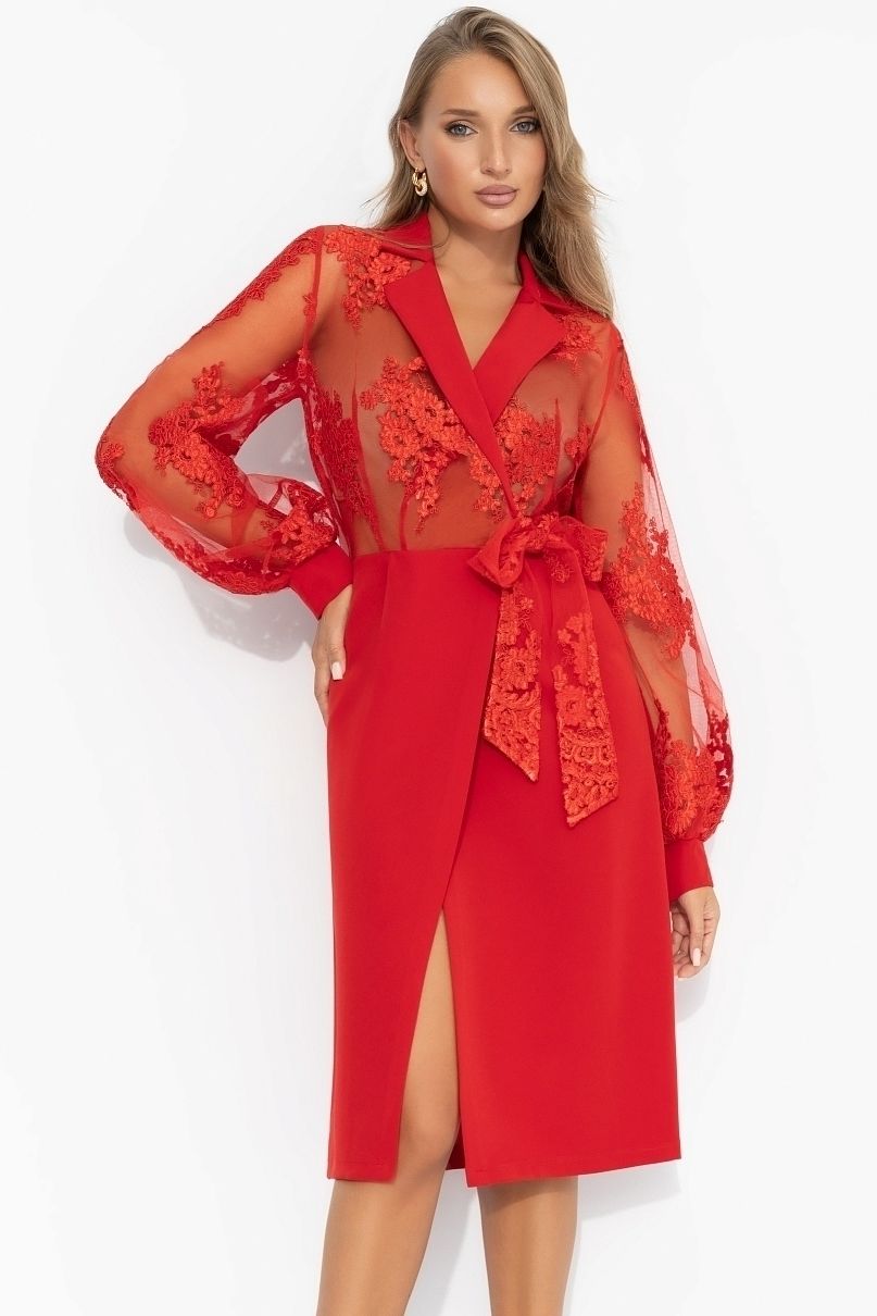 Платье красное с кружевом на запахе