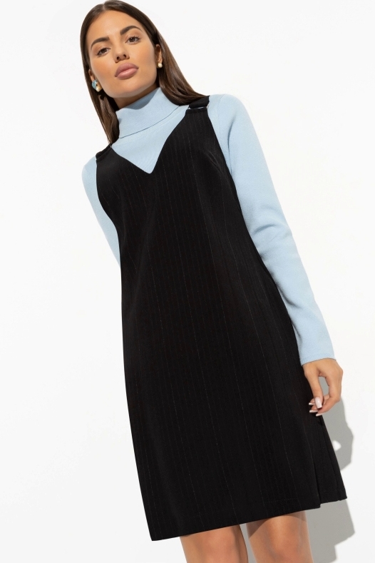 Сарафан чёрный в полоску с карманами от компании Charutti. Модель свободного силуэта, выполнена из костюмного полотна. V-образный вырез горловины по переду и спинке. Бретели оформлены металлической фурнитурой. Это Ваш отличный образ, в котором вы всегда чувствуете себя уверенно.