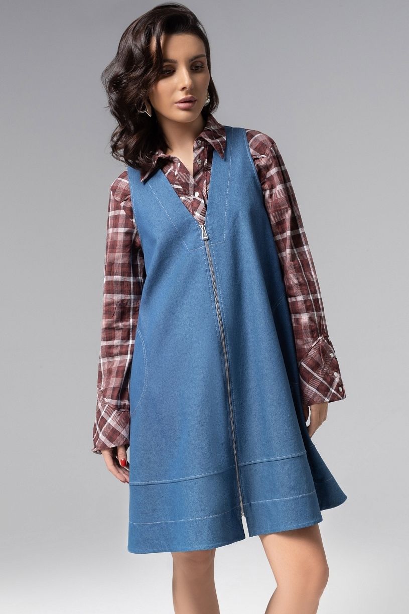 Сарафан синий объёмного кроя с карманами от компании Charutti, выполнен из костюмной ткани "Джинс". Дизайнерская молния по всей длине добавляет дерзкий акцент, превращая базовый фасон в ультрамодный. Элегантный и женственный лук вам гарантирован!