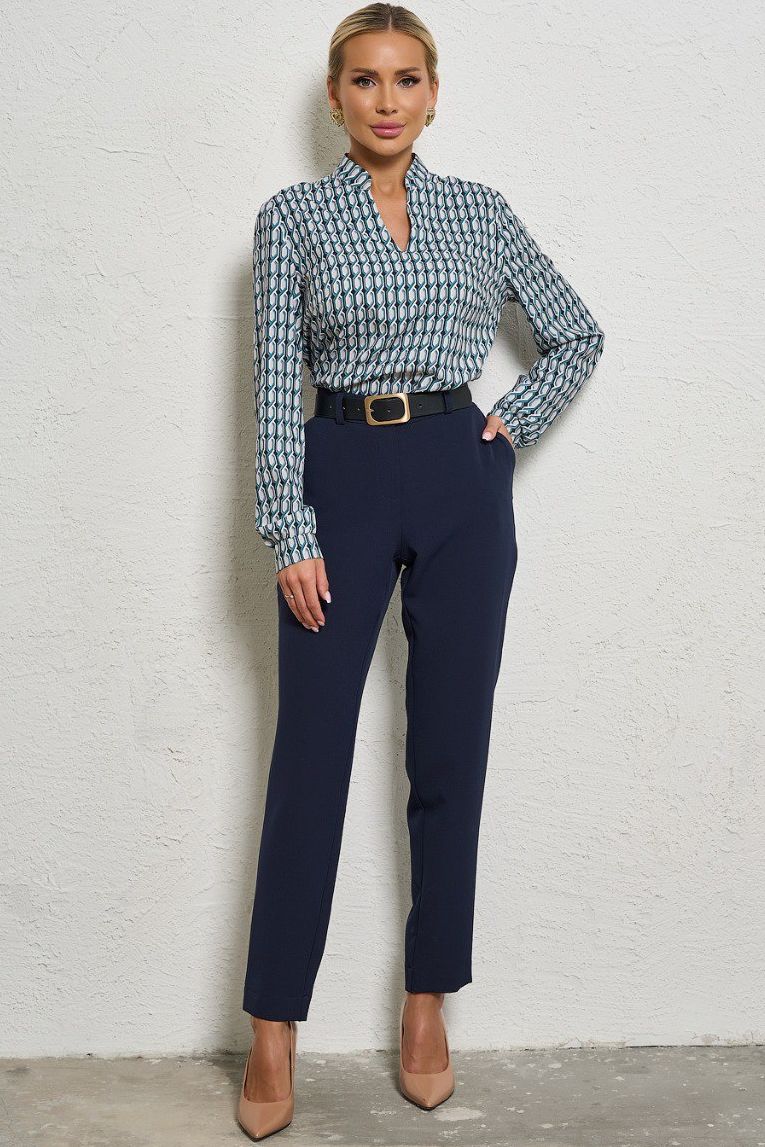 Брюки тёмно-синие с карманами от компании Jetty. Модель выполнена из костюмной ткани, облегающего силуэта и зауженная к низу, со средней посадкой. Притачной пояс с застежкой на пуговице, оснащен петлями для ремня. Брюки со стрелками и отворотом по низу. Идеально подойдут для повседневной носки. Ремень в комплект не входит.