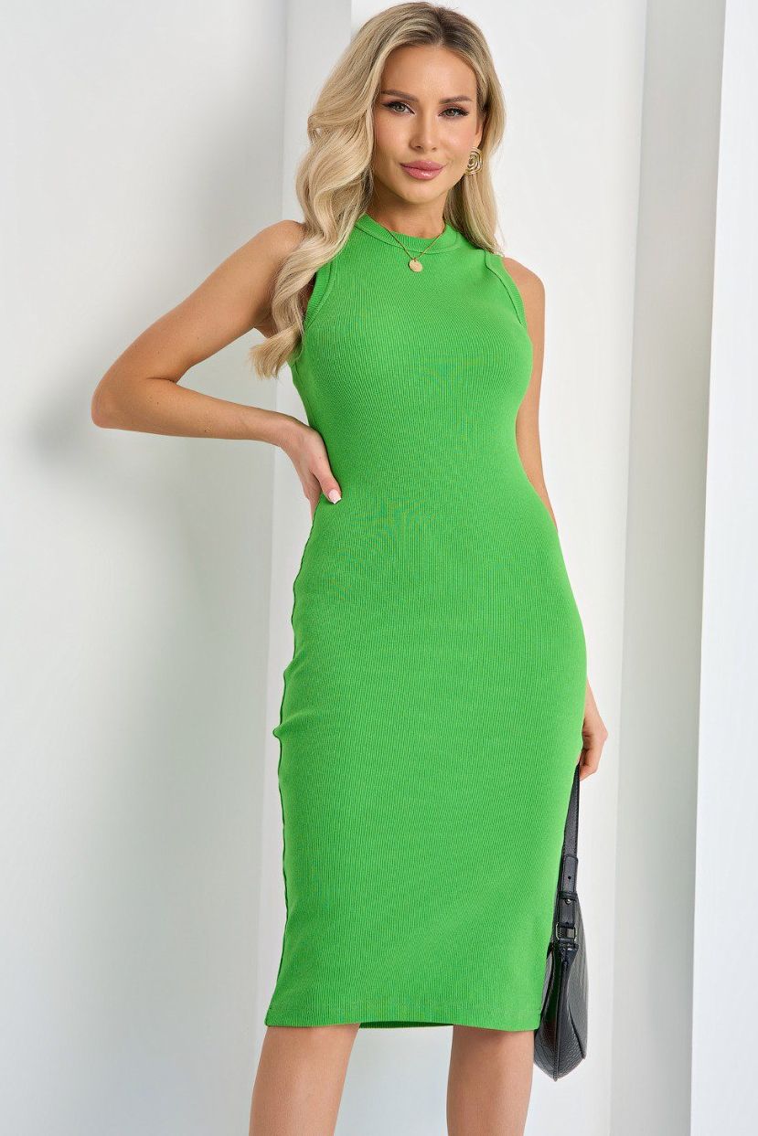 Платье-футляр трикотажное зелёное без рукавов от производителя Jetty. Модель прилегающего силуэта, круглый вырез горловины. Без застёжки. Идеальный выбор для городских модниц. Изделие после стирки садится в длину. На модели платье после стирки, усадка заложена в изделии.