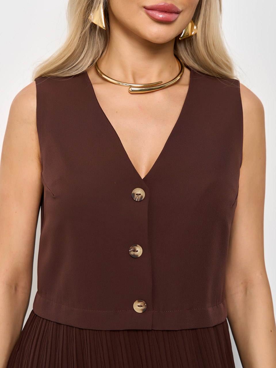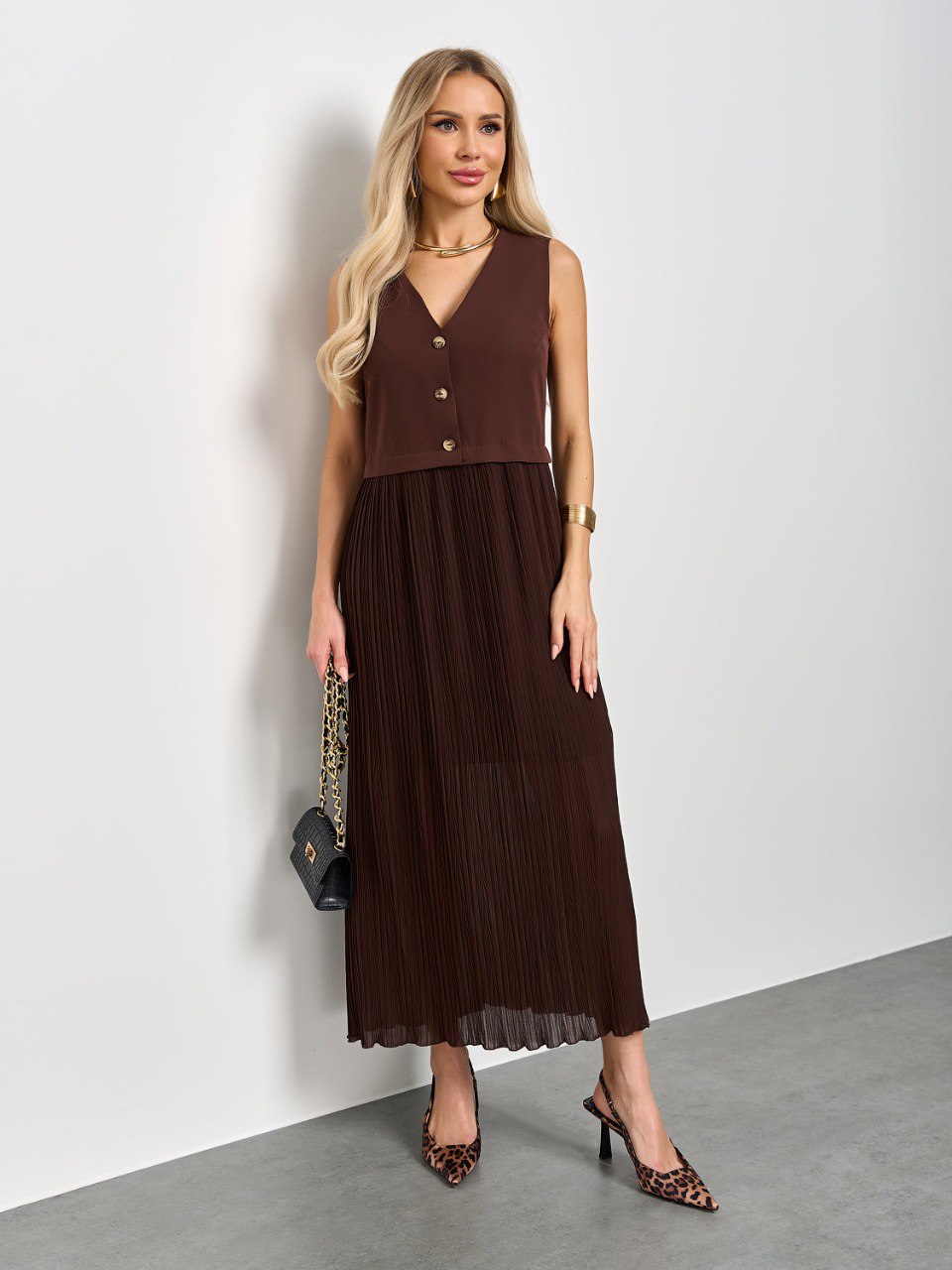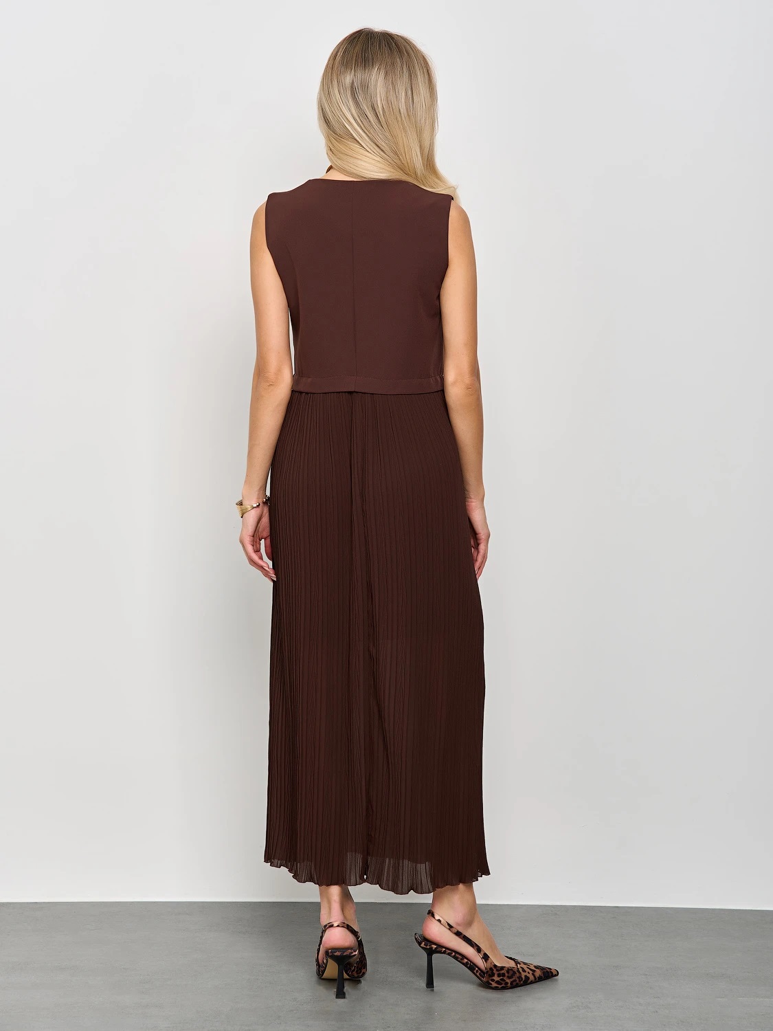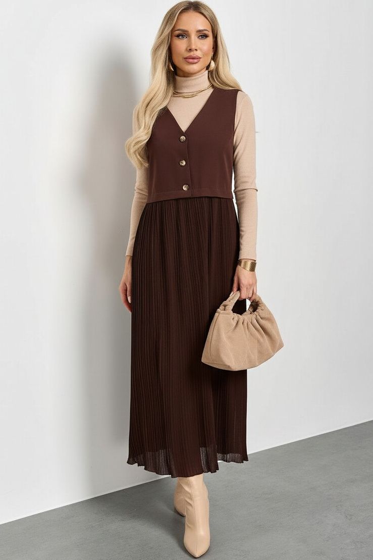 Платье комбинированное шоколадного цвета