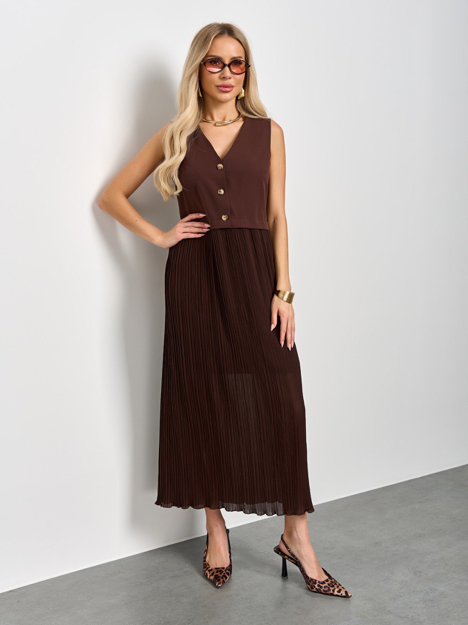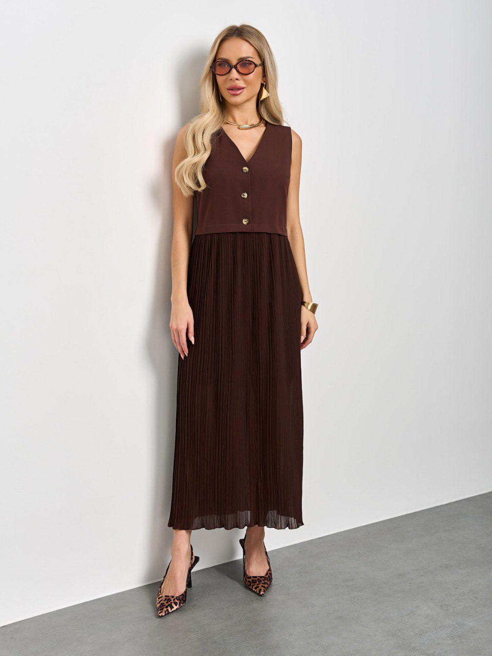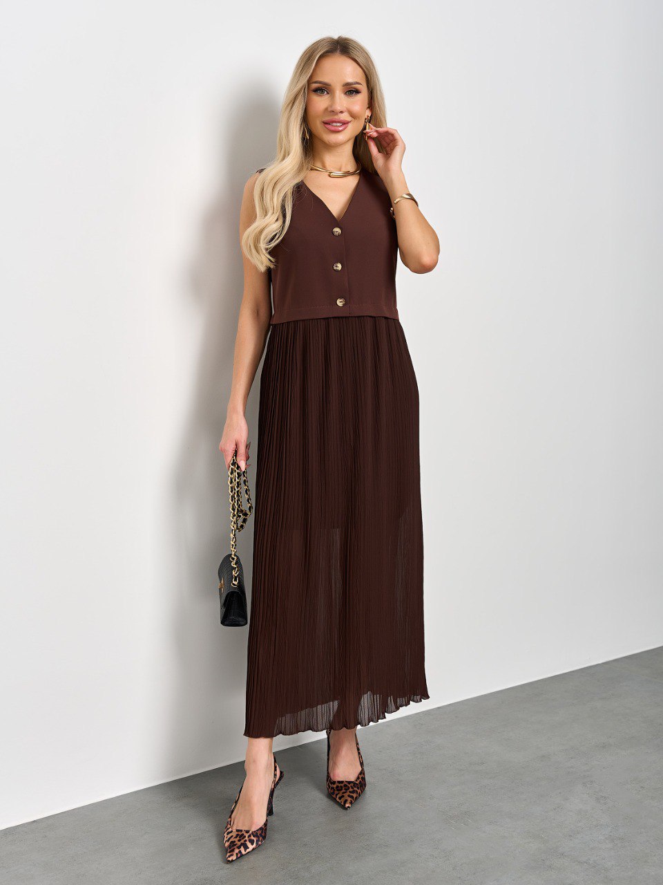 Платье комбинированное шоколадного цвета