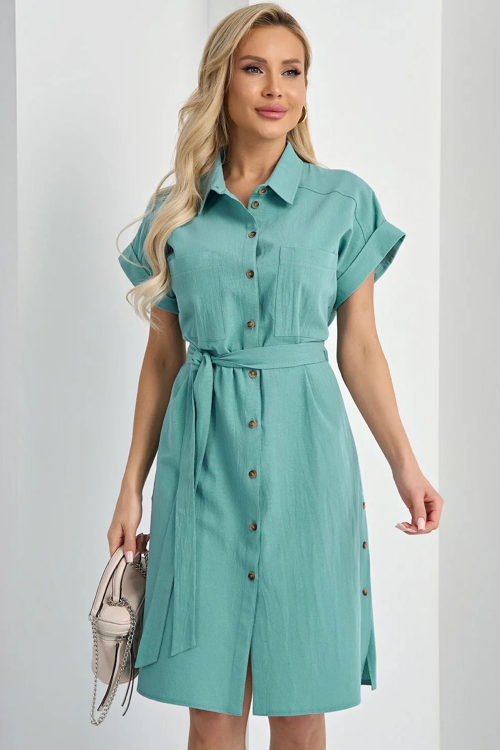 Платье-рубашка мятного цвета с поясом