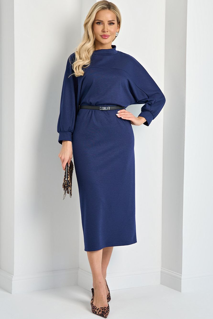 Платье трикотажное тёмно-синее от производителя Jetty. Модель с воротником стойкой прямого кроя. Длинные рукава летучая мышь. Декоративный рез кокетки переходящий на рукав. Ремень не идет в комплекте. Прекрасно дополнит Ваш гардероб для любого мероприятия.