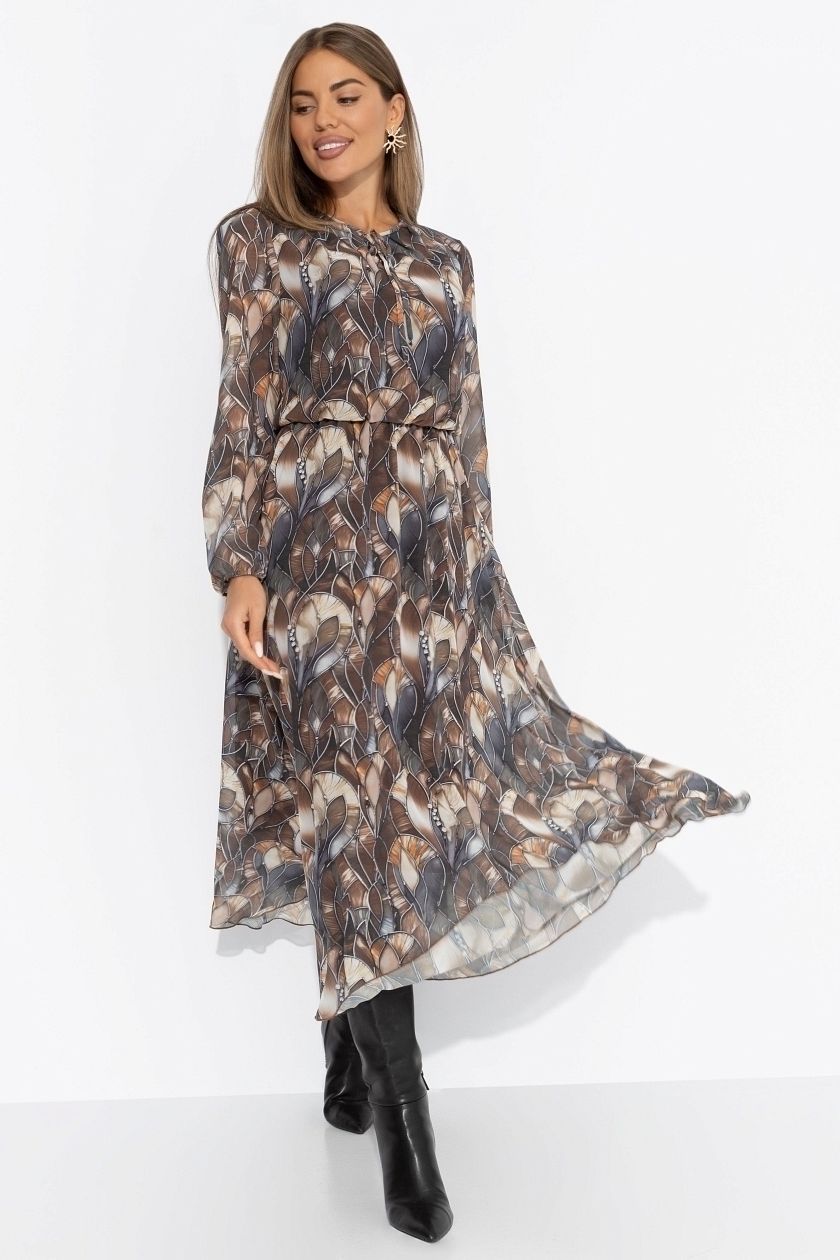 Юбка длинная коричневая из сетки-стрейч с принтом