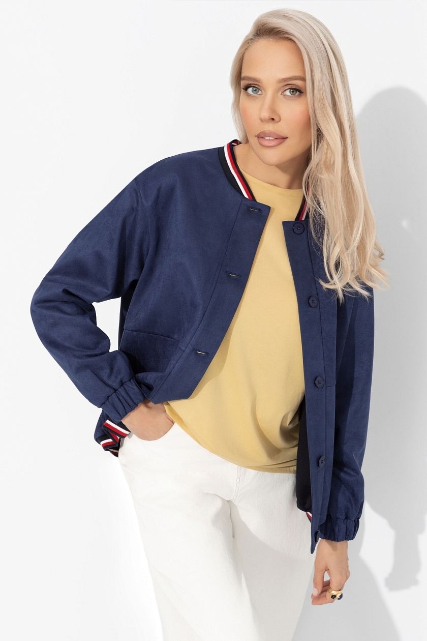 Бомбер тёмно-синий из экозамши