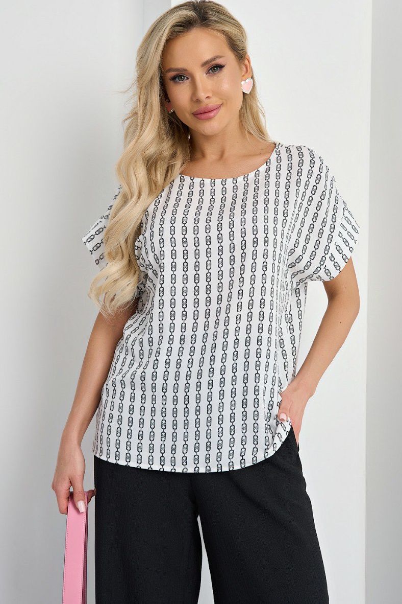 Блузка белая с короткими рукавами от компании Jetty. Изделие прямого силуэта, выполнено из блузочной ткани с принтом. С круглым вырезом горловины с внутренней обтачкой и цельнокроеными рукавами. Интересная блуза хорошо комбинируется с однотонными юбками, брюками или джинсами. Прекрасный выбор для Вашего повседневного гардероба.