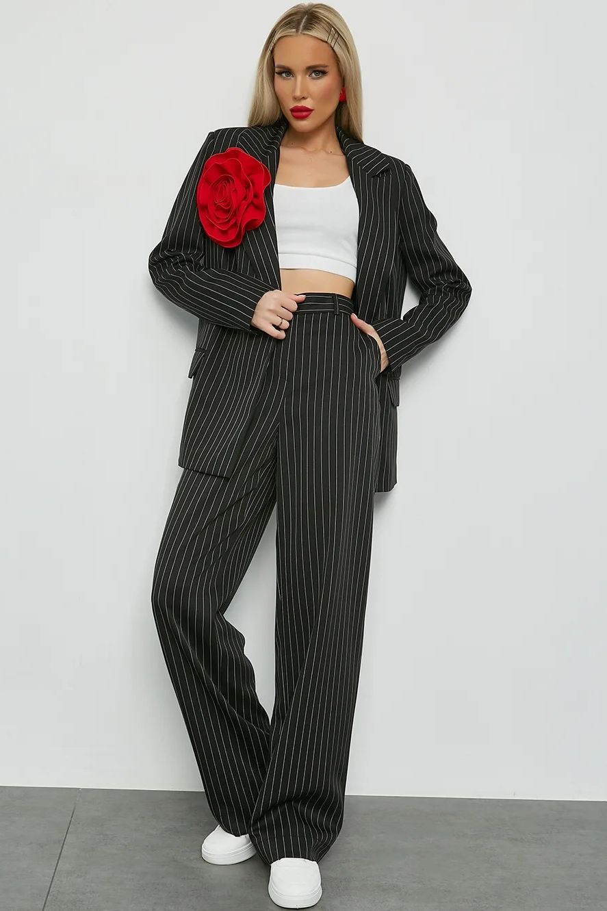 Брюки чёрные в полоску с карманами от бренда Jetty, выполнены из костюмной ткани. Притачной пояс оснащен петлями для ремня. По переду застёжка на молнию и пуговицу. Отличный выбор для повседневной носки.