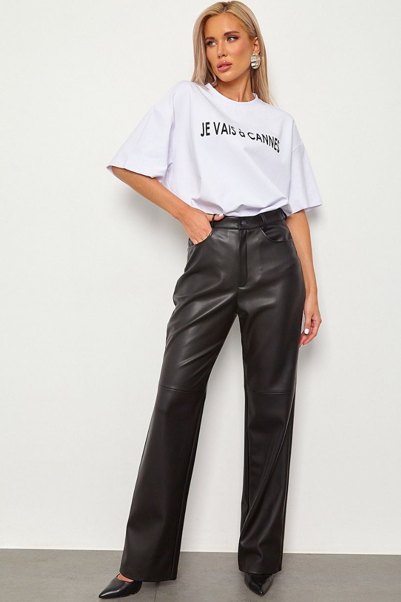 Брюки кожаные чёрные утеплённые от бренда Jetty, выполнены из искуственного полотна. Брюки прямого кроя, высокая посадка. Притачной пояс с шлевками для ремня. По переду застёжка на молнию и пуговицу. Боковые караманы. Прекрасный выбор для Вашего стильного гардероба.