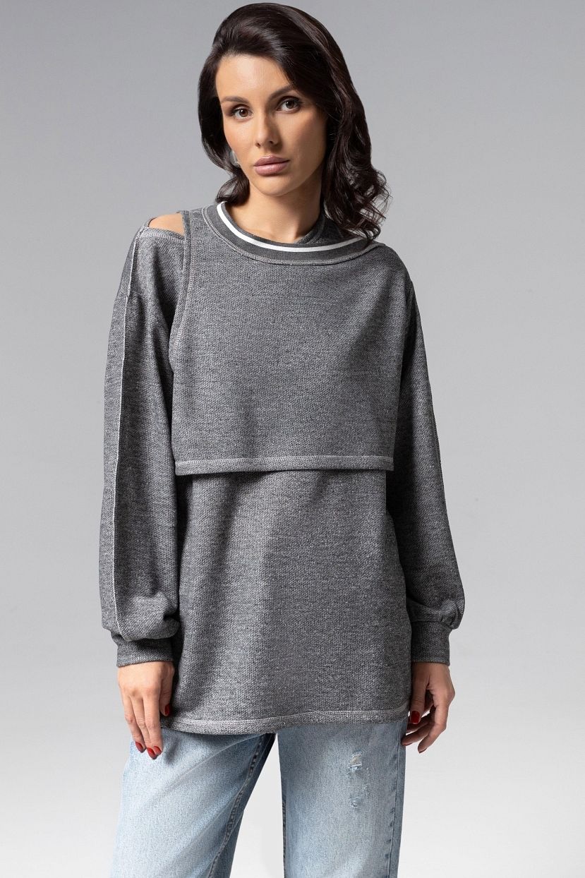 Лонгслив серый трикотажный многослойный от компании Charutti. Лонгслив свободного кроя, выполнен из футера. Круглый вырез горловины. Изделие 2 в 1. Каждый элемент можно носить и стилизовать по-отдельности. Идеальный выбор для создания неповторимого образа.